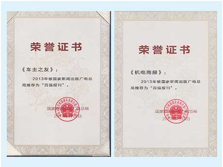 《车主之友》杂志和《机电商报》双双入选全国“百强报刊”,《车主之友》杂志获得第三届中国政府奖期刊提名奖;